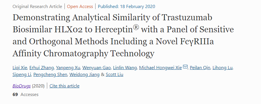 High Similarity!國際生物葯權威期刊BioDrugs刊登z6尊龙时凯曲妥珠單抗HLX02相似性研究成果