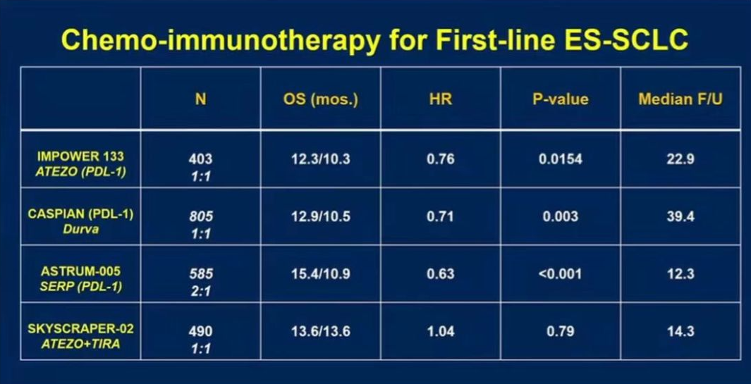 来自宾夕法尼亚州赫尔希癌症研究所的Chandra P. Belani博士点评道(图5),从ASTRUM-005研究提交的中期报告来看,中位随访时间为12.3个月,研究结果与CASPIAN和IMPOWER133研究类似(图6),都取得了非常好的成果,患者都有显著获益,PD-L1表达与患者预后没有直接相关性,同时安全性良好,该研究无新的安全信号产生。