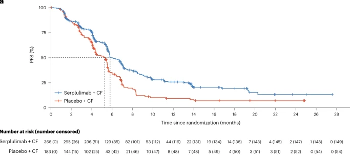 ASTRUM-007(NCT03958890)是一项随机、双盲、多中心的Ⅲ期临床试验,旨在研究斯鲁利单抗对比安慰剂分别联合化疗在既往未接受治疗、PD-L1阳性(综合阳性评分≥1)的晚期ESCC患者中的疗效和安全性。551例患者以2∶1的比例随机分组,两组患者分别接受斯鲁利单抗或安慰剂联合5-氟尿嘧啶和顺铂治疗(每2周1次)。斯鲁利单抗联合化疗组的中位无进展生存期(PFS)显著长于安慰剂联合化疗组(5.8 vs. 5.3个月;风险比[HR] 0.60,95% CI 0.48–0.75;p<0.0001)。斯鲁利单抗联合化疗组对比安慰剂联合化疗组的中位总生存期(OS)也获得了显著改善(15.3 vs. 11.8个月;HR 0.68,95% CI 0.53–0.87;p=0.0020)。安全性方面,斯鲁利单抗联合化疗的安全性良好。与单纯化疗相比,斯鲁利单抗联合化疗(每2周一次)作为一线治疗方案显著改善了PD-L1阳性晚期ESCC患者的PFS和OS,此治疗方案为该患者群体的治疗提供新选择。