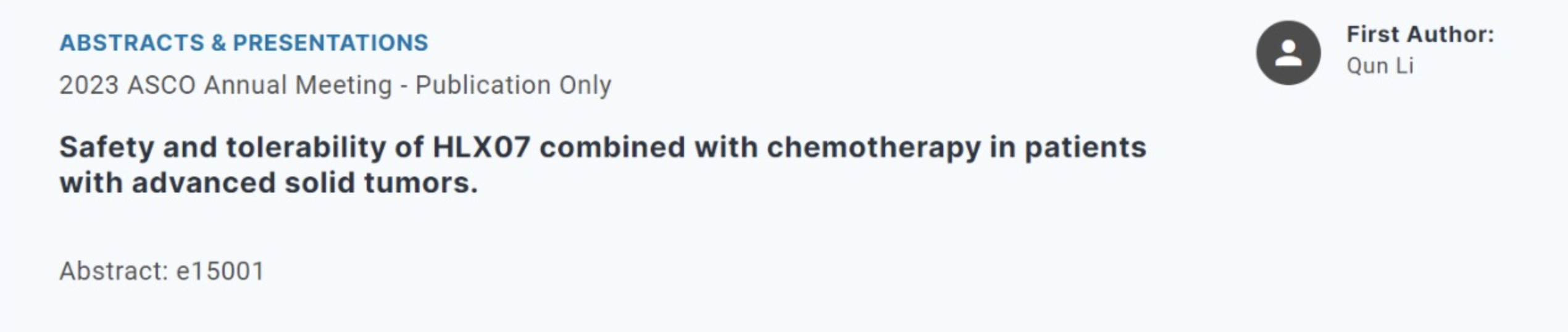 HLX07联合化疗在晚期实体瘤患者中的安全性与耐受性(摘要编号e15001)。